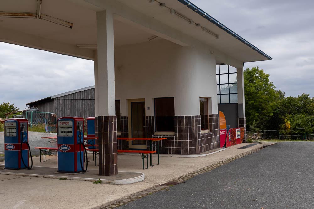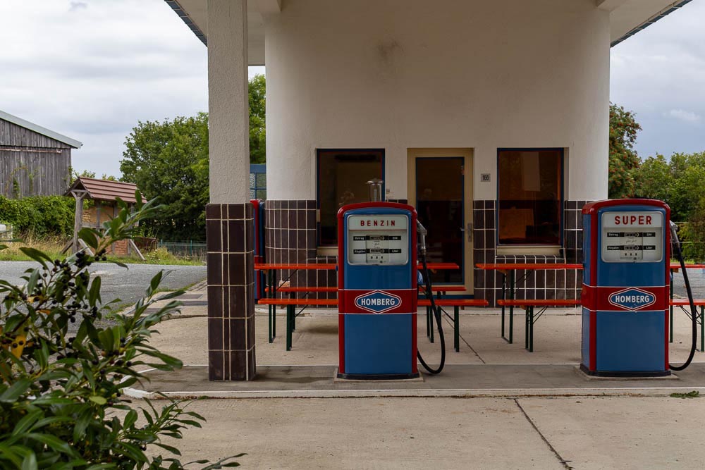 Neben zahlreichen Gebäuden aus dem ländlichen Leben bis zum Ende des 19. Jahrhunderts gibt es im Freilichtmuseum Detmold auch ein etwas moderneres Gebäude zu sehen: eine alte Tankstelle, erbaut im Jahr 1950.