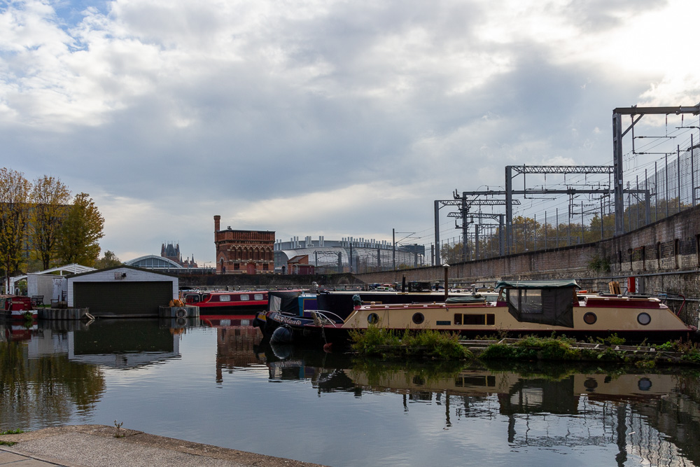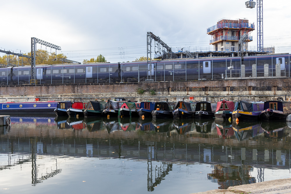 Vom Parliament Hill liefen wir gut 2 Stunden durch Industrie- und Wohngebiete entlang sehr verkehrsreicher Straßen. Schließlich kamen wir an eine Brücke, von der eine Treppe zum Regent`s Kanal hinabführte. Und da auch der Weg am Kanal zu unserem Ziel am Bahnhof St. Pancras führte, entschlossen wir dort weiter zu gehen.