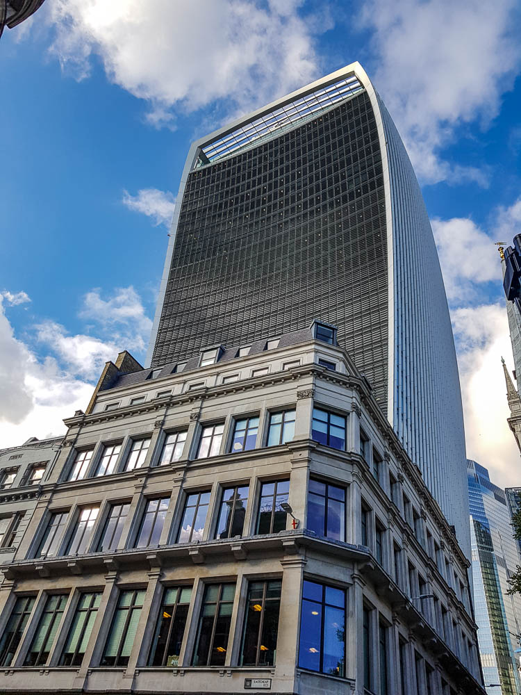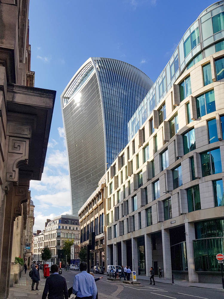 Eines der auffälligsten Gebäude in der Londoner City ist das Hochhaus 20 Fenchurch Street. Als ich dieses Hochhaus erstmals sah, erinnerte mich die Form spontan an einen Rasierapparat. Im Volksmund wird es häufig „The Walkie Talkie“ genannt, weil es viele wohl eher an ein Funkgerät erinnert – wenn man die Frontseite des Hauses sieht, ein durchaus passender Vergleich (ein entsprechendes Bild gibt es weiter unten).