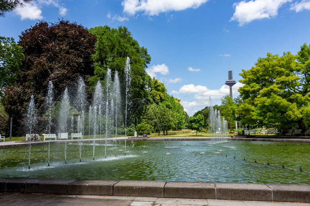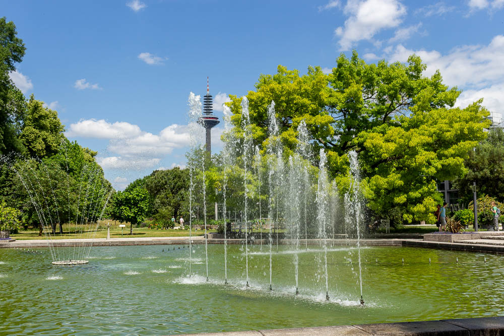 Die Wasserspiele im Palmengarten, dem botanischen Garten der Stadt Frankfurt am Main.