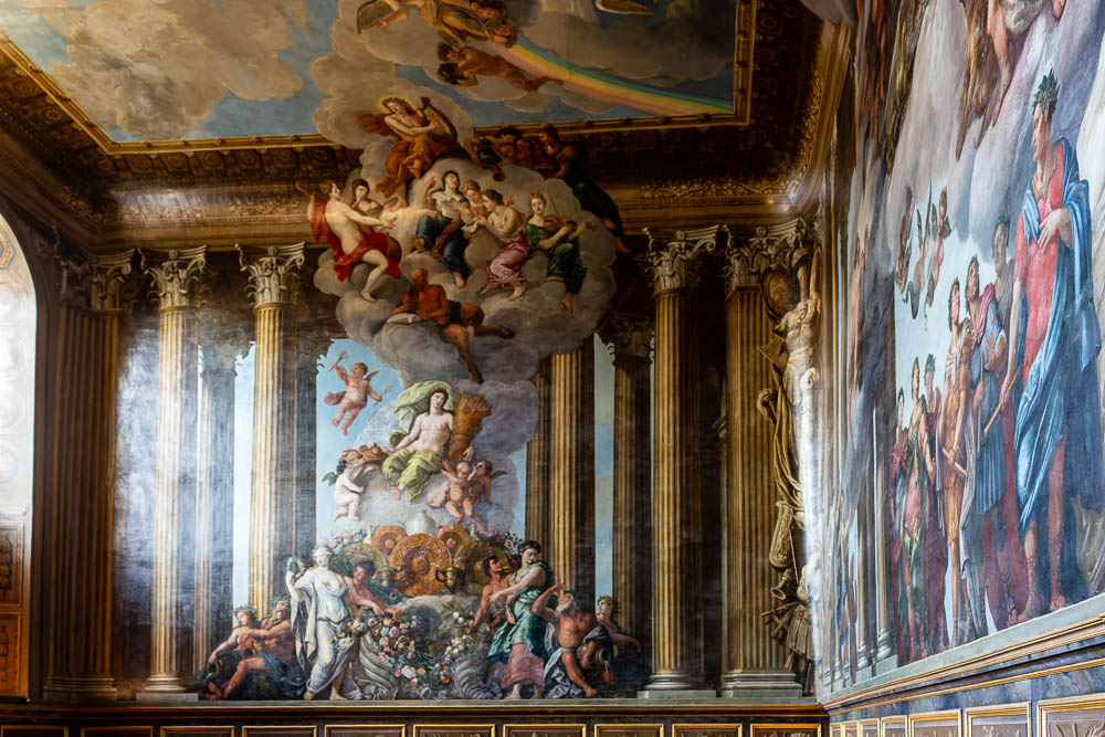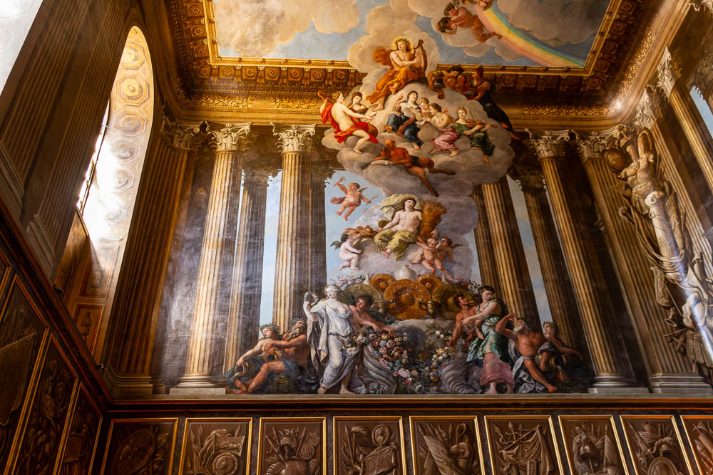 Die Wände und die Decke zeigen Malereien des italienischen Barockmalers Antonio Verrio, der in den 1670er Jahren nach England kam und zu einem der führenden Künstler am königlichen Hof wurde.
