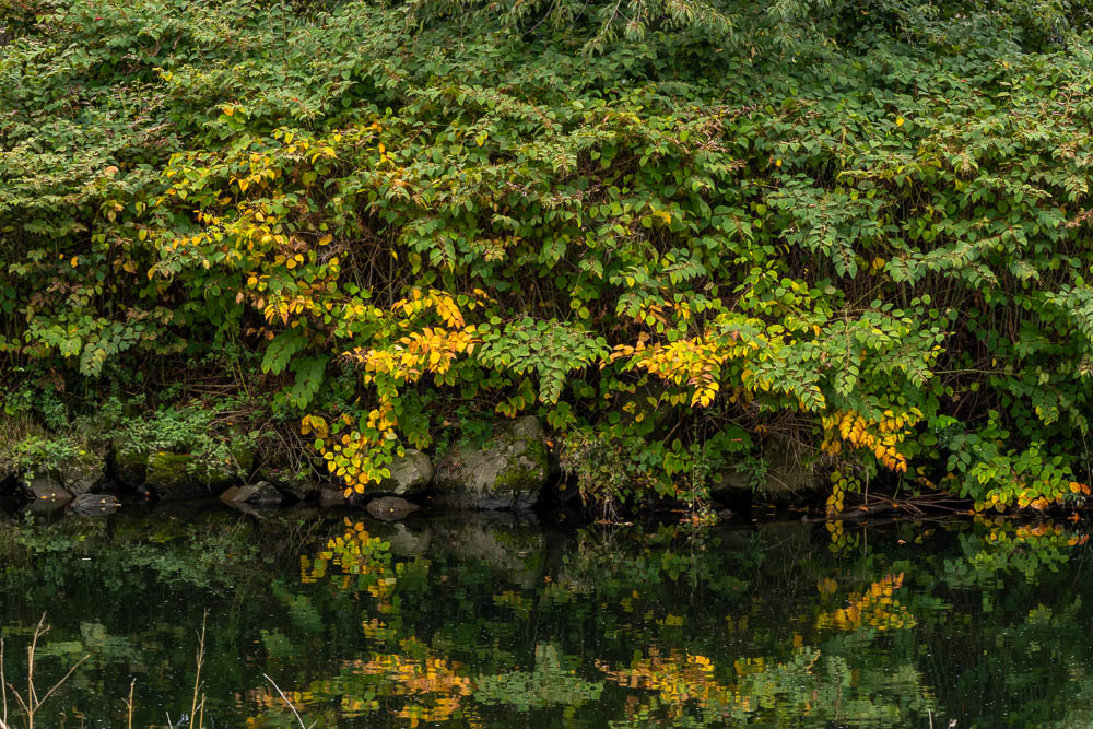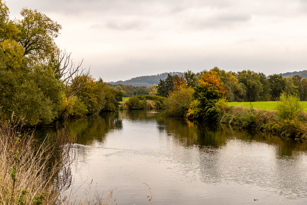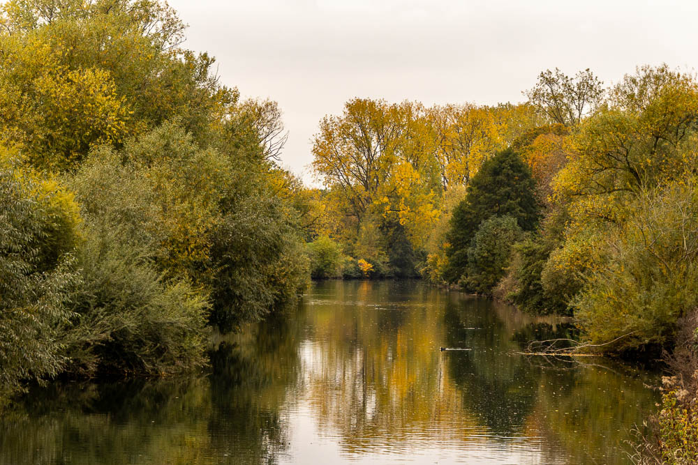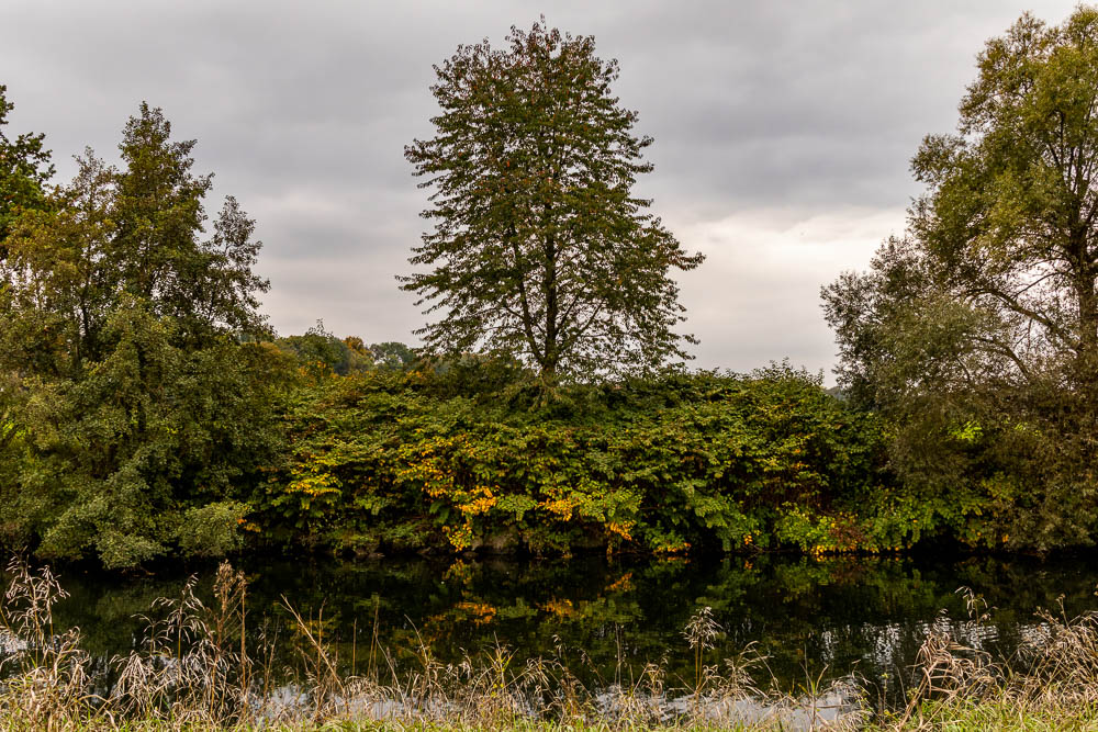 Besonders gefallen hat mir das Farbenspiel der Bäume und Sträucher am Flussufer. Das letzte Grün des Sommers weicht langsam den leuchtenden Farben des Herbstes.