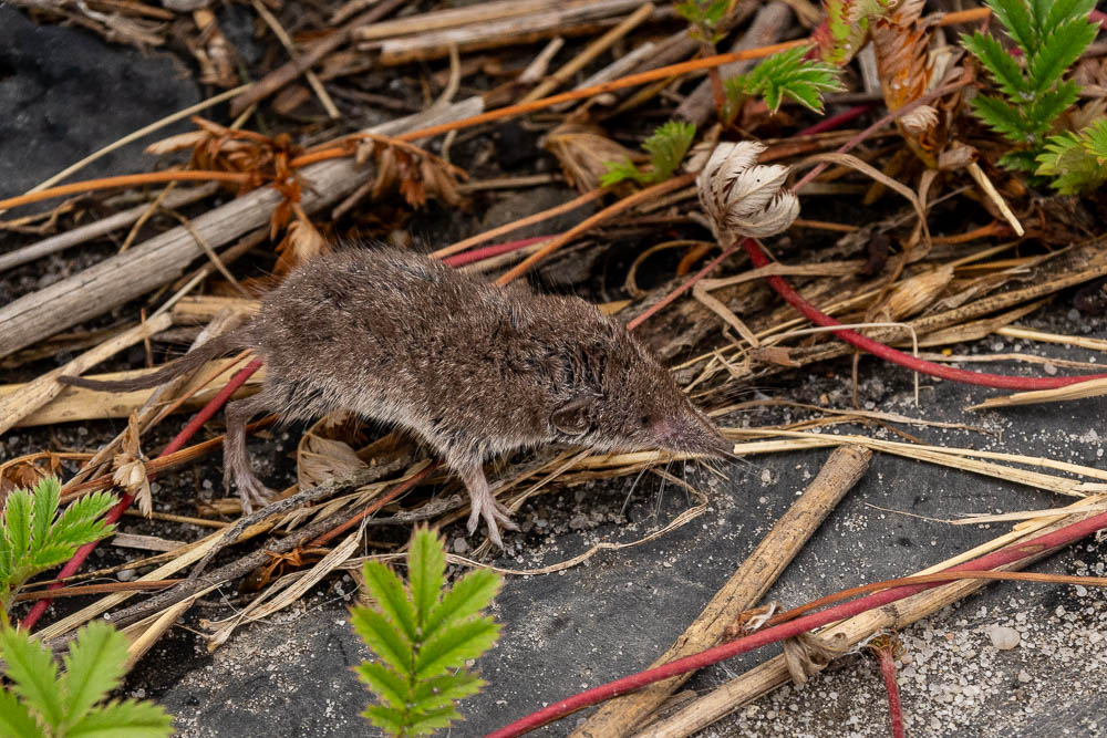 Auch diese Spitzmaus hielt nur für ein paar Sekunden inne, um dann schnell wieder zur Jagd aufzubrechen.