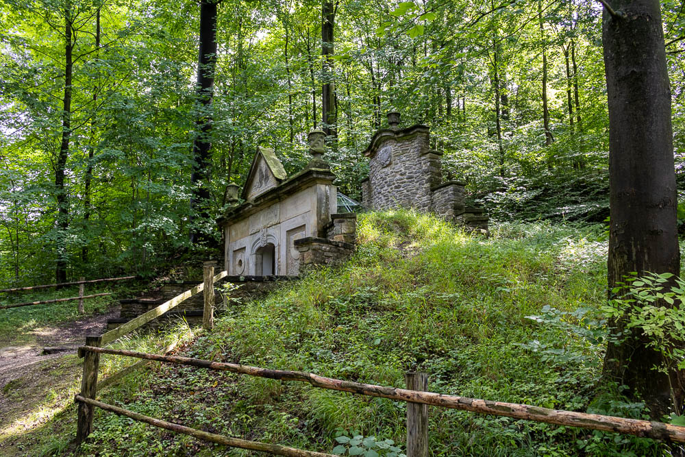 Im Freilichtmuseum Detmold sind nicht nur die historischen Gebäude sehenswert, auch Landschaftlich ist das Gelände sehr schön gestaltet. Die alte Wassermühle, die ich im vorherigen Bericht gezeigt habe, steht in der Nähe des Eingangs. Von der Mühle führt der Weg durch ein kleines Waldstück, in dem man bald ein kleines Bauwerk am Wegesrand sieht.