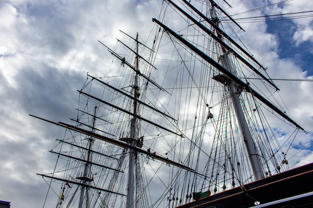 Den Londoner Stadtteil Greenwich erreicht man aus der City bequem mit dem Schiff. Kurz vor der Ankunft in Greenwich erblickt man vom Wasser aus ein Schiff an Land. Der mächtige Dreimaster ist die „Cutty Sark“.
