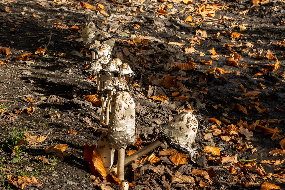 Diese Pilze haben sich ordentlich hintereinander aufgestellt – aber einer muss unbedingt aus der Reihe tanzen.