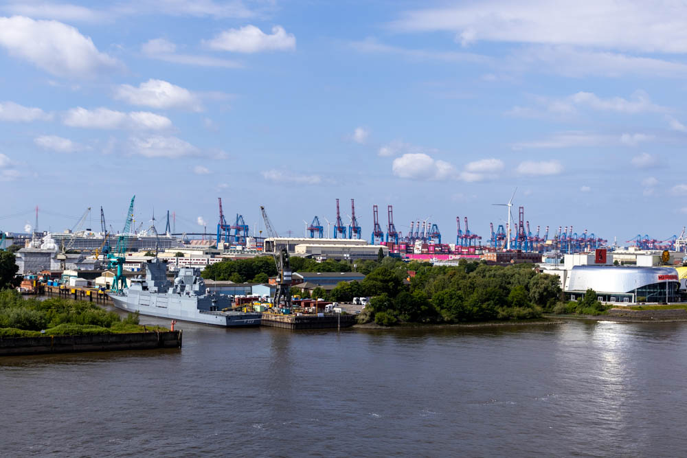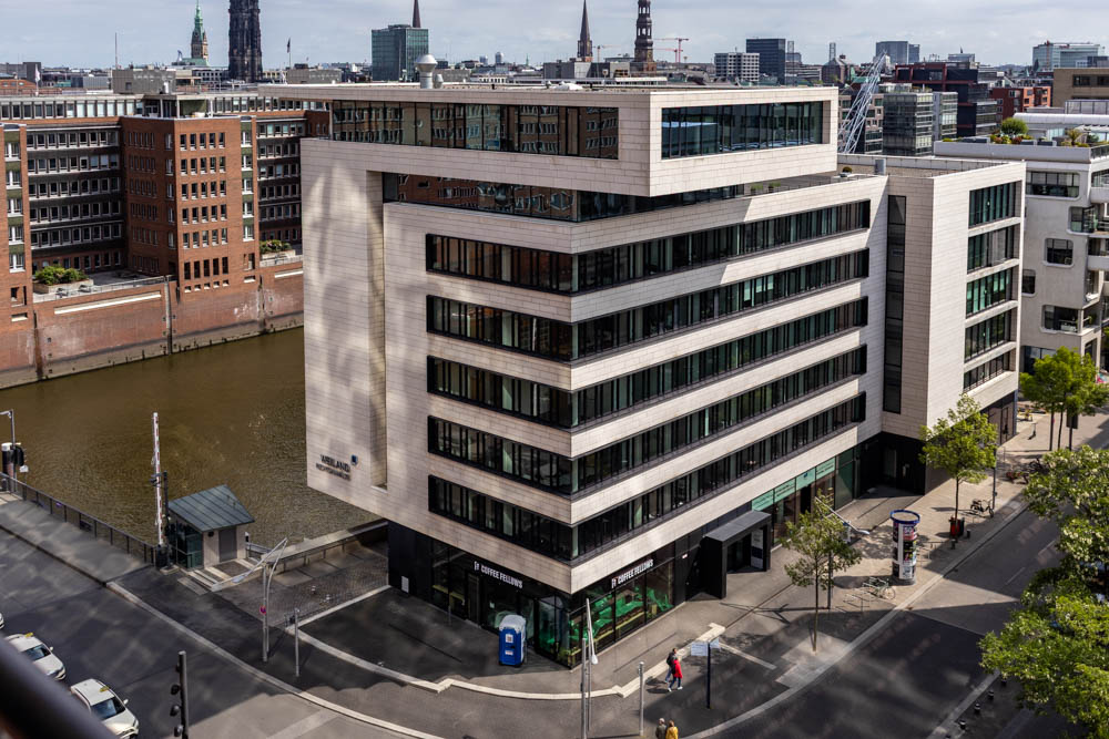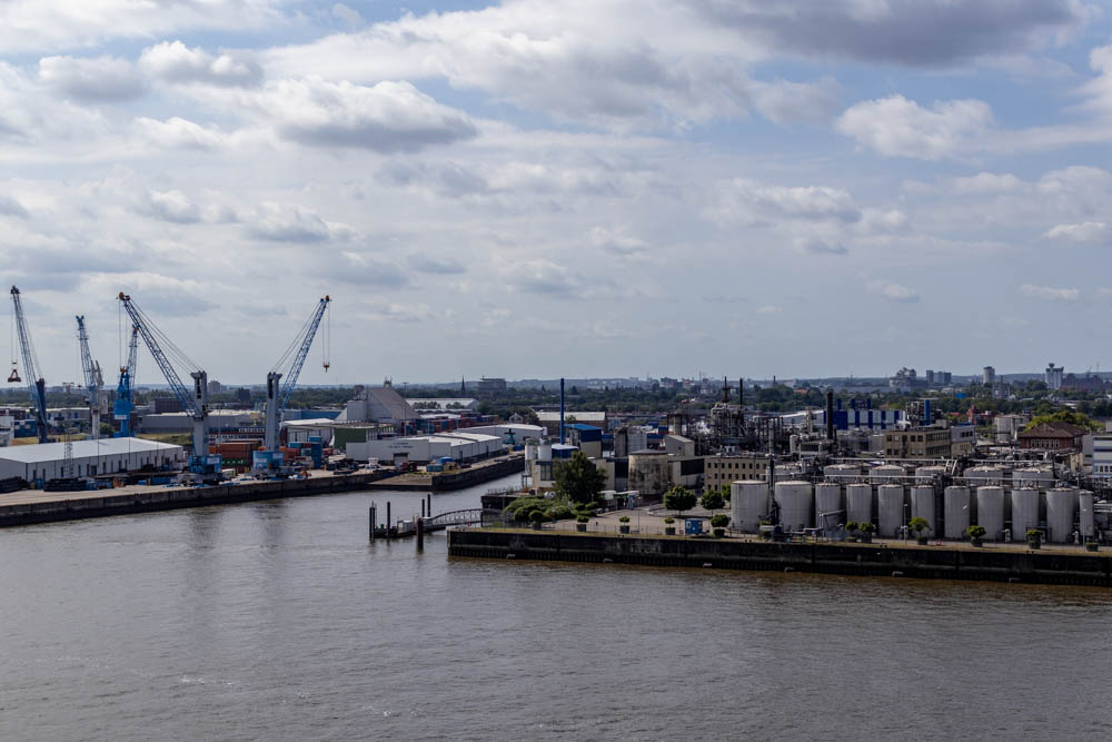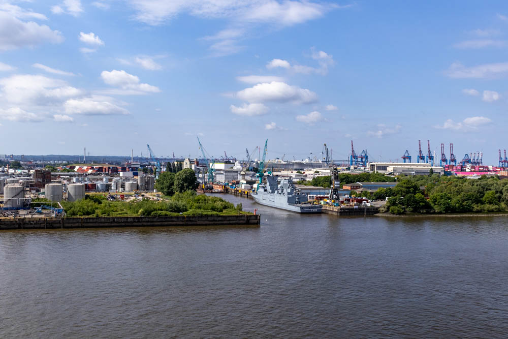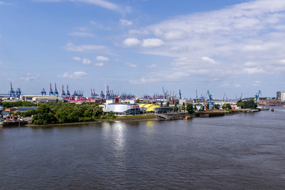 Die Plaza verläuft rund um das Gebäude in 37 Metern höhe, zwischen dem alten Speicher und dem daraufgesetzten Glasbau.
