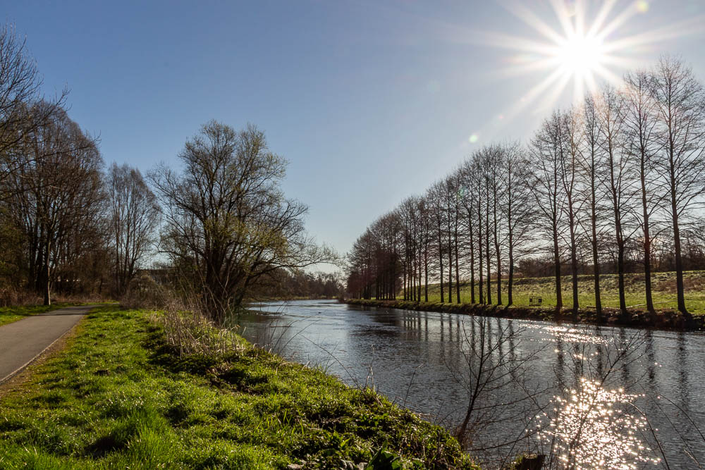 Zwei Bilder, aufgenommen am Ufer der Ruhr in Fröndenberg. Das Erste stammt aus dem April 2023. Das erste Grün in der morgendlichen Frühlingssonne.