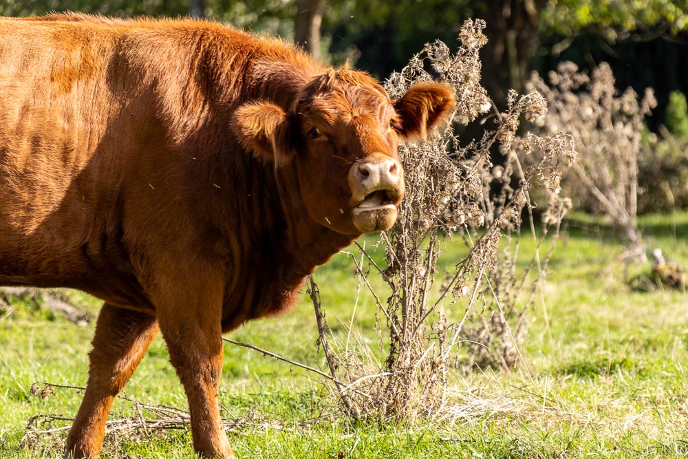 Ein halbes Rind genießt die Herbstsonne.