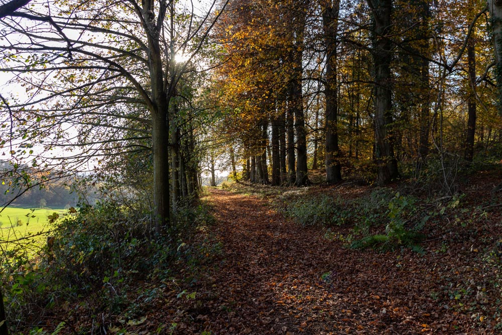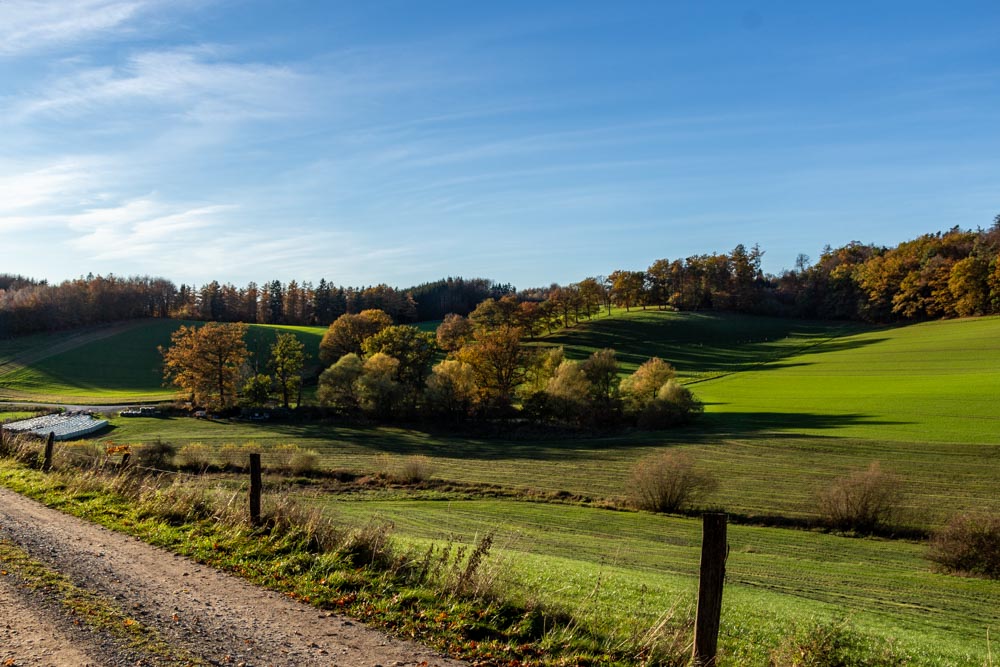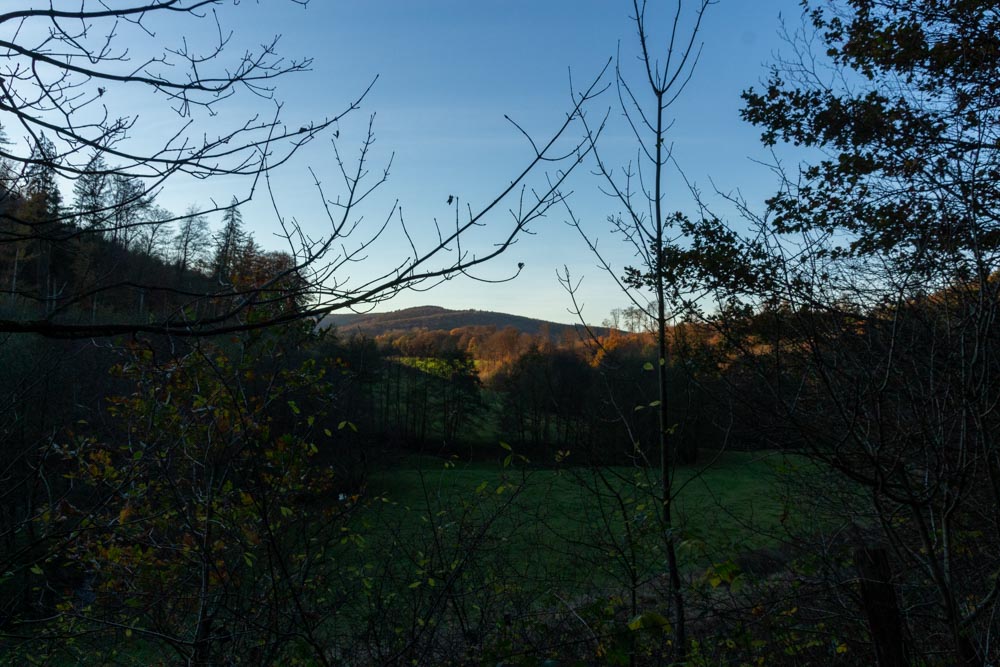 Im weiteren Verlauf der Wanderung wechselt der Weg zwischen Wald und und weiter Landschaft.