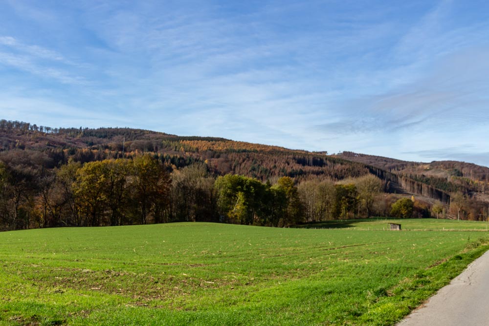 Nach weiteren Ausblicken auf die weite Landschaft des Sauerlands erreichen wir einen Wald.